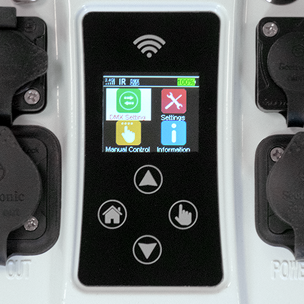 Das integrierte bidirektionale LumenRadio Timo Two FX W-DMX & CRMX Modul ermöglicht zuverlässige kabellose Steuerung. Alle Parameter lassen sich per RDM am Lichtpult abfragen und anpassen. Timerfunktion und großes Farbdisplay sorgen für präzise Abläufe und intuitive Bedienung. Userfarben können in allen B4-Leuchten gespeichert werden.