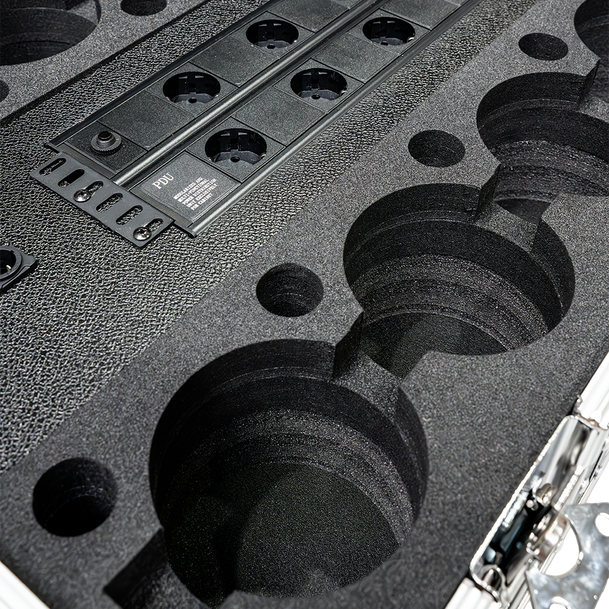 Das Case ist mit integrierten 230V-Schuko-Anschlüssen, professionellen Seetronic Power IN & Link Anschlüssen sowie stabilen Rollen und mehreren Griffen ausgestattet und eignet sich optimal für den Einsatz in der professionellen Veranstaltungs-, Bühnen- und Lichttechnik.